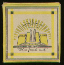 The ashtray is accompanied by it's original box, which functioned as a mailer, so that visitors to the fair could mail it back to friends and family as a souvenir.