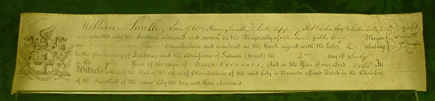 Edwards (Citizen and Goldsmith), the Freedom of the City of