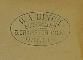 At one point, the book was sold through an Irish dealer in Dublin, W. A. Hinch. The stamp of this firm can be seen on the front free end paper.