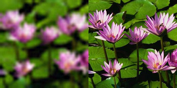 The image below exemplifies how this affects the way a digital image looks. The left side is the equivalent of the 4’ by 4’ mosaic using 1’ tiles (i.e. 400 pixels x 400 pixels at 8ppi) where a vague idea of the picture is formed, but nothing concrete. The right side is the digital equivalent of using the 1” tiles (i.e. 12x the resolution, so 400 pixels x 400 pixels at 96 ppi).