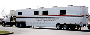 The mobile concrete laboratory is available to demonstrate new and innovative testing equipment onsite at projects or arrange for the laboratory to be on display in conjunction with conferences or workshops. The laboratory contains the normal field testing equipment such as air meters, slump cones, compression machine, ovens, curing tanks, etc. and in addition has innovative equipment such as maturity meters for predicting strength, impact-echo for measuring concrete thickness and flaw detection, match-cure molds, air void analyzer for measuring the air void properties of fresh concrete, pull-off device for measuring the bond strength of overlays in the field, etc. The mobile concrete laboratory is also available to support other testing requirements related to TE-30 "High Performance Concrete Pavements", TE-36 "High Performance Concrete", DP-119 "Quality Concrete" and field simulations for Performance Related Specifications for concrete pavements. Mobile laboratory, telephone and onsite assistance, speakers, specialized workshops and seminars, and nondestructive equipment loan program.