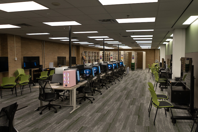 The Media Library Commons area in Willis Library contains space for playing tabletop games and using gaming stations. There are 11 gaming console stations and 17 gaming PC stations in this area. This room may be reserved for one-time use by faculty for gaming, game design and instruction by contacting the Media Library. Individual reservations of the game stations can be made by students through the online reservation system.