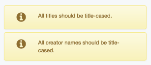 This warning appears if a title, creator, contributor, or