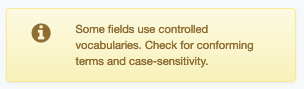 Warning Messages For validation, if a field value seems wrong, the field will be highlighted in the sidecar along with a message explaining what needs to be checked: