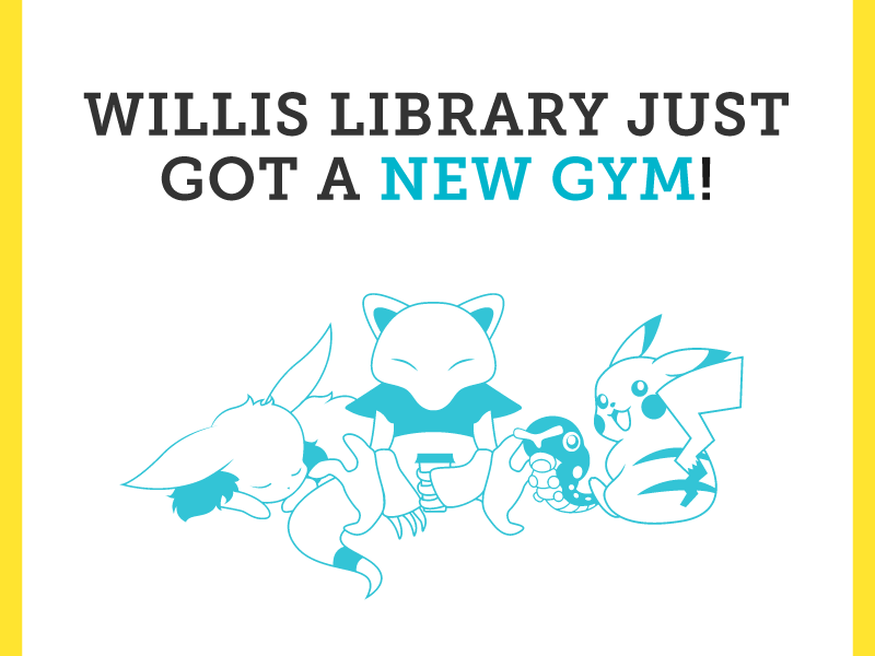 Pokemon Go has become the largest mobile game in history! You can stop by Willis Library to stock up on supplies at the Pokestop, set lures, and defend your team’s gym.