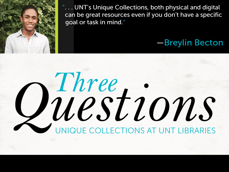 Three Questions is an initiative to share the value that our faculty, students, and others in the UNT community derive from using the Unique Collections at UNT Libraries.