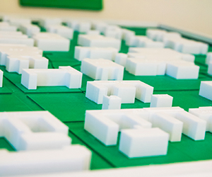 The most crucial step, braille, was next. Barrett took time to learn the best practices of braille, specifically braille signage. How much braille could fit on the buildings? Barrett originally wanted to label the street names in braille but found there wasn’t enough room. Instead, Barrett 3D modeled indents for the streets on the map so streets could be distinguished from the rest of the map’s surface. All of these intricacies made Barrett appreciate how difficult life is for the visually impaired.