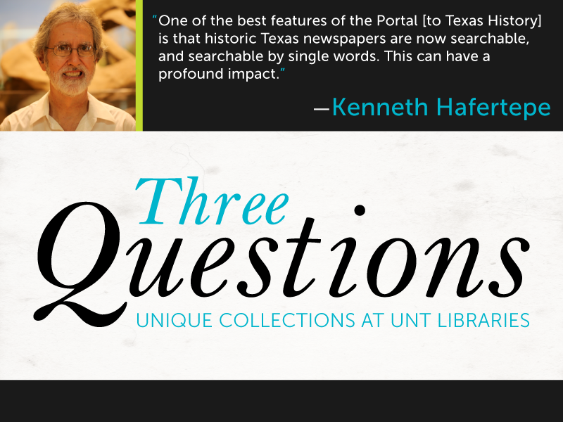 Three Questions is an initiative to share the value that our faculty, students, and others in the UNT community derive from using The Portal to Texas History at UNT Libraries.
