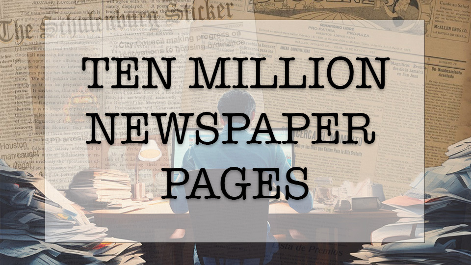 On July 7, 2023, the Texas Digital Newspaper Program reached 10 million pages of newspapers. These are newspapers digitally preserved, freely accessible, and fully text-searchable in The Portal to Texas History, hosted by University of North Texas Libraries.