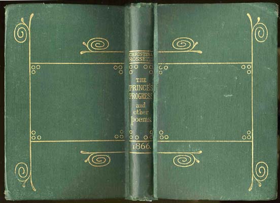 The following two exceptional binding designs are by Dante Gabriel Rossetti and show the ideals of the Pre-Raphaelite Brotherhood in its movement towards aestheticism and away from extravagance. The Pre-Raphaelite ideal was a precursor of the Arts and Crafts Movement.