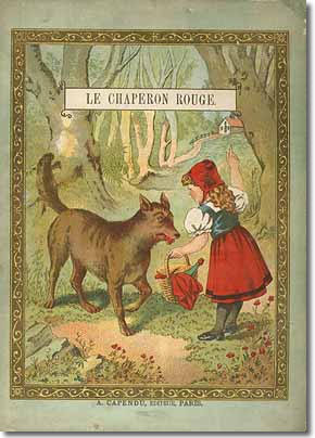 During the nineteenth century, the French took an early interest in paper dolls and went on to produce fine paper toys, including movables. The publisher A. Capendu of Paris released several movables under the series Libraire enfantine illustrée. Some were "pull-out" books, in the style of McLoughlin's Little Showman's Series. However, the series also included "pull-the-tab" movables, similar to those of Meggendorfer. Le Chaperon rouge, or Little Red Riding Hood, is an example of a tab operated movable from the series. Le Chaperon rouge. Librairie enfantine illustrée. Paris: A. Capendu, Editeur, [ca.1890]. |