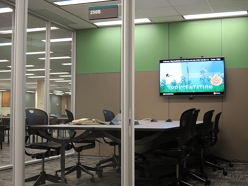 Room 250B is on the 2nd floor of Willis Library. Students, faculty, and staff can use this room. It is a BYOD (Bring Your Own Device) space for studying, presenting, collaborating, and sharing content wirelessly.