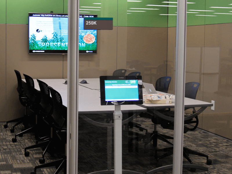 Room 250K is on the 2nd floor of Willis Library. Students, faculty, and staff can use this room. It is a BYOD (Bring Your Own Device) space for studying, presenting, collaborating, and sharing content wirelessly.