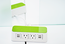 We have universal docking stations with dual monitors, book shelves, and charging stations on the Lower Level.