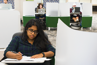 This area designated for individual, quiet study with no cell phones, group work, loud music on headphones, or conversation.