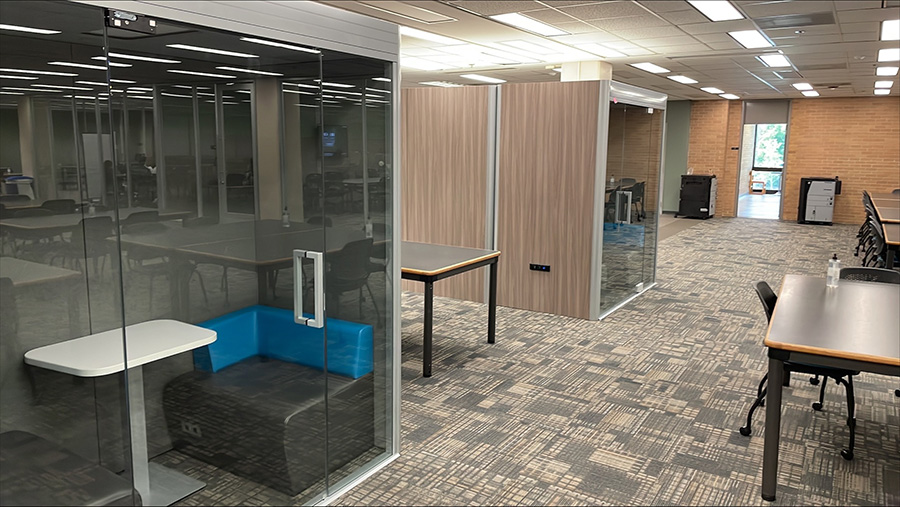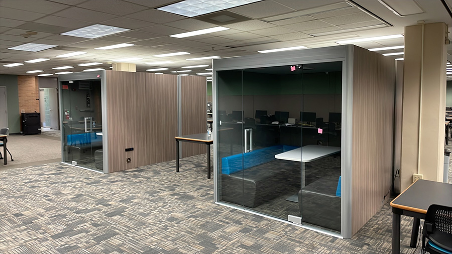 Located throughout Willis Library, study pods are small, enclosed spaces allowing for semi-private study on more open floors.